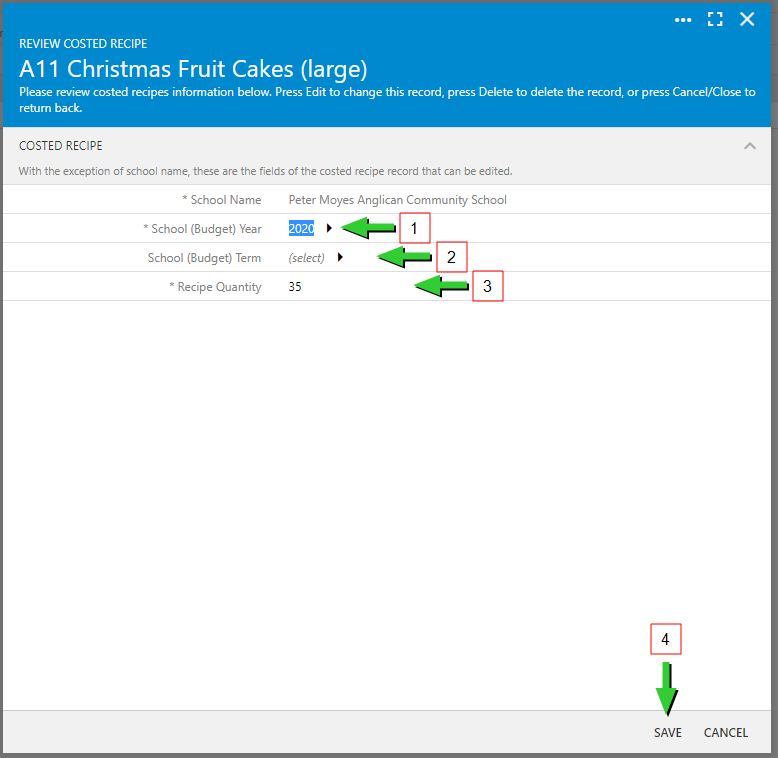 Your schools costed recipes can be updated by following the below instructions.